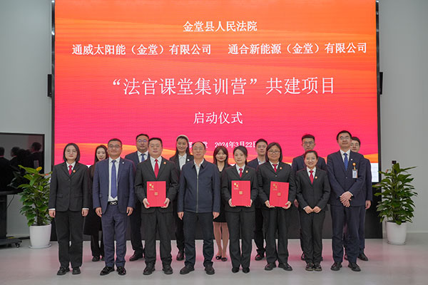 3月22日,金堂縣人民法院黨組書記、院長(zhǎng)徐文波一行先后蒞臨通合新能源、通威太陽(yáng)能金堂公司,并舉行“法官課堂集訓(xùn)營(yíng)”啟動(dòng)儀式。通合新能源總經(jīng)理助理郭寬新,通威太陽(yáng)能金堂公司總經(jīng)理助理龐三鳳及通威太陽(yáng)能相關(guān)業(yè)務(wù)團(tuán)隊(duì)參加本次會(huì)議。
