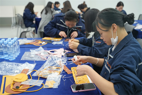在金堂基地,各位工作人員向大家分發(fā)手工素材包并詳細(xì)講解制作流程。隨后,員工一邊穿針引線,一邊交流制作心得,歡聲笑語不絕于耳。經(jīng)過一個小時的精心制作,可愛的海綿寶寶就呈現(xiàn)在了大家的手中。