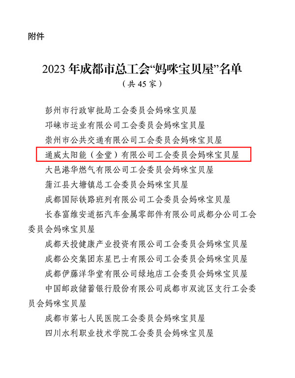 通威太陽能金堂基地獲授“成都市媽咪寶貝屋”示范點