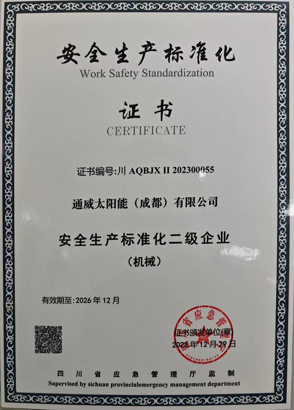 通威太陽能雙流基地順利通過四川省安全生產標準化二級企業復審
