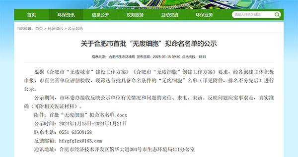 關(guān)于合肥市首批“無(wú)廢細(xì)胞”擬命名名單的公示