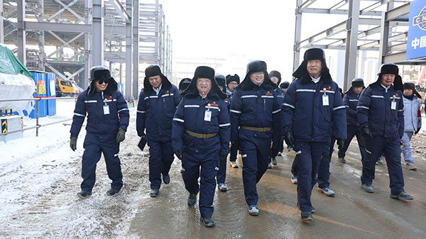 李總深入項目建設現場,與屬地工程管理及建設單位人員交流,詳細了解了冬季施工、進度管控、工程質量等情況,并對安全高效、打造精品相關工作進行部署。李總裁稱贊通威硅能源團隊朝氣蓬勃、動力十足,是一支聚力向上、拼搏奮進的團隊,肯定了通威硅能源推進工程建設的方案和思路,并對改善提升、創新建設方面提出了具體要求。