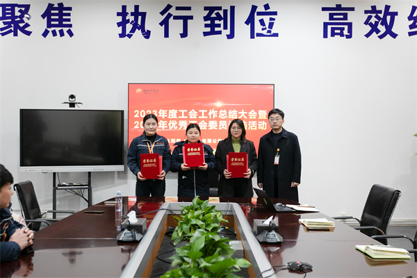本次評選以工會委員們的日常工作參與度及積分為重要依據,最終組件五廠生產部宋麗等三人被評為2023年度優秀工會委員,工會主席熊杰為優秀委員們頒發獎品并發表講話,熊主席對2023年工會委員們的工作成果表示高度認可,并就2024年的工作進行展望,激勵工會委員們以更飽滿的精神狀態和更加積極的工作熱情投入到新一年的工作中。