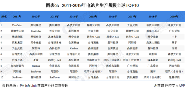 中游產業鏈:全球電池片生產規模TOP10中國占據9席