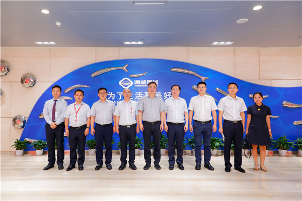 孫行長一行前往通威體驗中心實地參觀,詳細了解通威38年發展歷程及兩大核心主業發展現狀,并高度贊賞公司綠色生態發展理念和近年來在農業和新能源領域取得的成績。