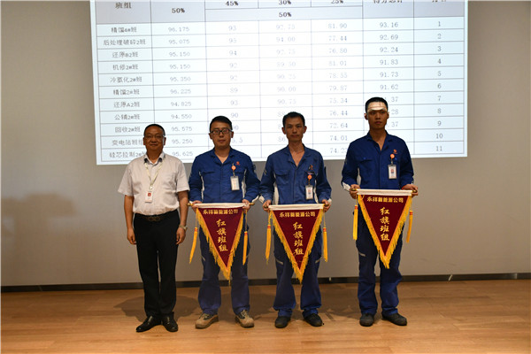 永祥新能源總經(jīng)理李斌為紅旗班組頒獎(jiǎng)