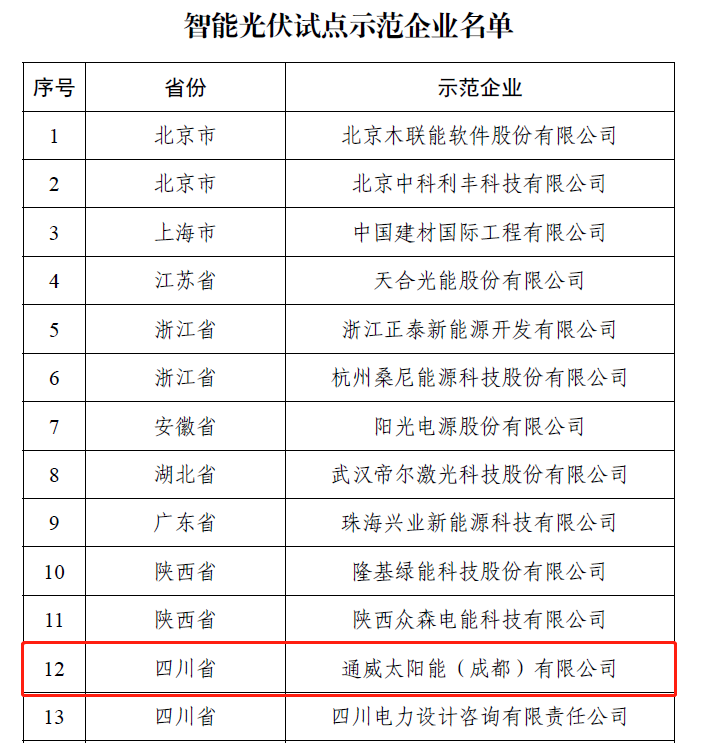 近日,國家工業和信息化部電子信息司發布了《智能光伏試點示范名單》(2020 第32號),通威太陽能成都公司榮獲“智能光伏示范企業”稱號。