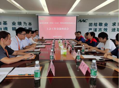 座談會上,雙方黨群干部各自介紹了黨群共建工作開展情況,分別就黨建帶業務、黨建帶群建等工作情況開展情況展開深入交流。周主席指出,通威太陽能眉山公司從雙方開始接洽到簽約、開工、投產,創造了項目投資、工程建設的“甘眉速度”格外矚目,希望能夠加強同通威太陽能的溝通和交流,充分借鑒通威太陽能的優秀經驗,發揮企業黨組織和工會政治、組織優勢,開展創造性黨工聯動。常書記對周主席的熱情接待表示感謝,并表示啟明星鋁業黨群共建工作經驗豐富,亮點突出,先進做法值得借鑒,希望加強同園區優秀企業交流與溝通,共同探索黨群共建工作新思路。