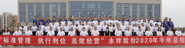 展望下半年發(fā)展,段董要求,各公司要做好周密部署。一是安全工作絕不松懈。安全是所有工作的前提,必須持續(xù)打造安全高地,始終保持清醒的頭腦和如履薄冰的態(tài)度;二是持續(xù)推進(jìn)“標(biāo)準(zhǔn)+清單”管理,堅(jiān)持做到“凡是有崗位、有操作,就必須有標(biāo)準(zhǔn),工作標(biāo)準(zhǔn)化、標(biāo)準(zhǔn)清單化、清單數(shù)據(jù)化、數(shù)據(jù)信息化”;三是堅(jiān)持技術(shù)創(chuàng)新和自我批判。切忌驕傲自滿,強(qiáng)調(diào)“走出去”,打開思路、認(rèn)清自已、對(duì)標(biāo)優(yōu)秀、持續(xù)精進(jìn)。技術(shù)創(chuàng)新引領(lǐng)未來,要以全新的技術(shù)創(chuàng)新、全新的智慧工廠、全新的產(chǎn)品定位、全新的戰(zhàn)略定位和全新的核心競爭力打造一流企業(yè);四是文化引領(lǐng),打造高效執(zhí)行力團(tuán)隊(duì)。越是困難時(shí)候越需要英雄站出來,要干在實(shí)處、走在前列,以奮斗者為本,建立表彰機(jī)制、激勵(lì)機(jī)制。同時(shí)加強(qiáng)人才梯隊(duì)建設(shè),為企業(yè)未來發(fā)展做好人才儲(chǔ)備。五是積極探索機(jī)械化、自動(dòng)化、智能化,加強(qiáng)大數(shù)據(jù)、新系統(tǒng)的應(yīng)用,不斷加強(qiáng)智能化、智慧化工廠的打造,推動(dòng)公司高質(zhì)量、現(xiàn)代化發(fā)展。段董號(hào)召全體永祥人戮力同心、全力奔跑、堅(jiān)定信心、斗志昂揚(yáng)沖刺挑戰(zhàn)目標(biāo),為2020年交出一份滿意的答卷。