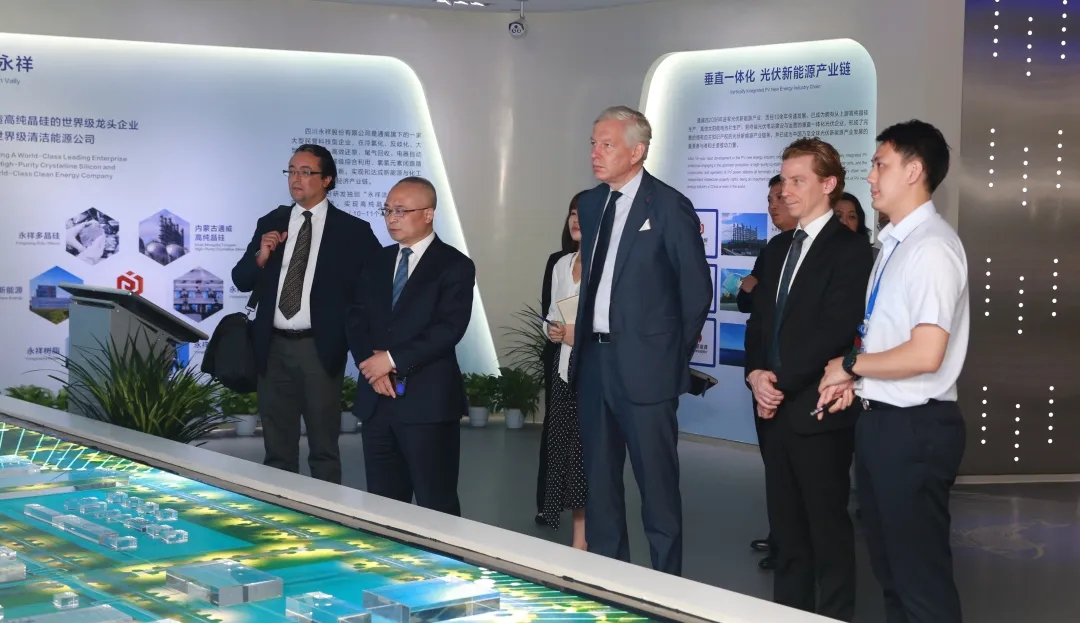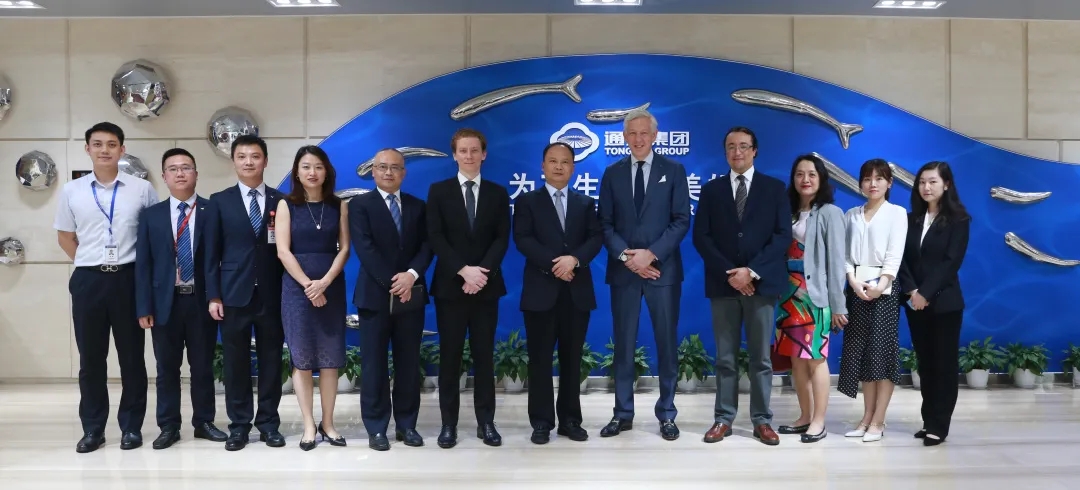 鮑達民大使一行參觀了通威集團體驗中心,詳細了解了通威38年發展歷程,并對通威農業和新能源雙主業發展成果給予高度贊賞。