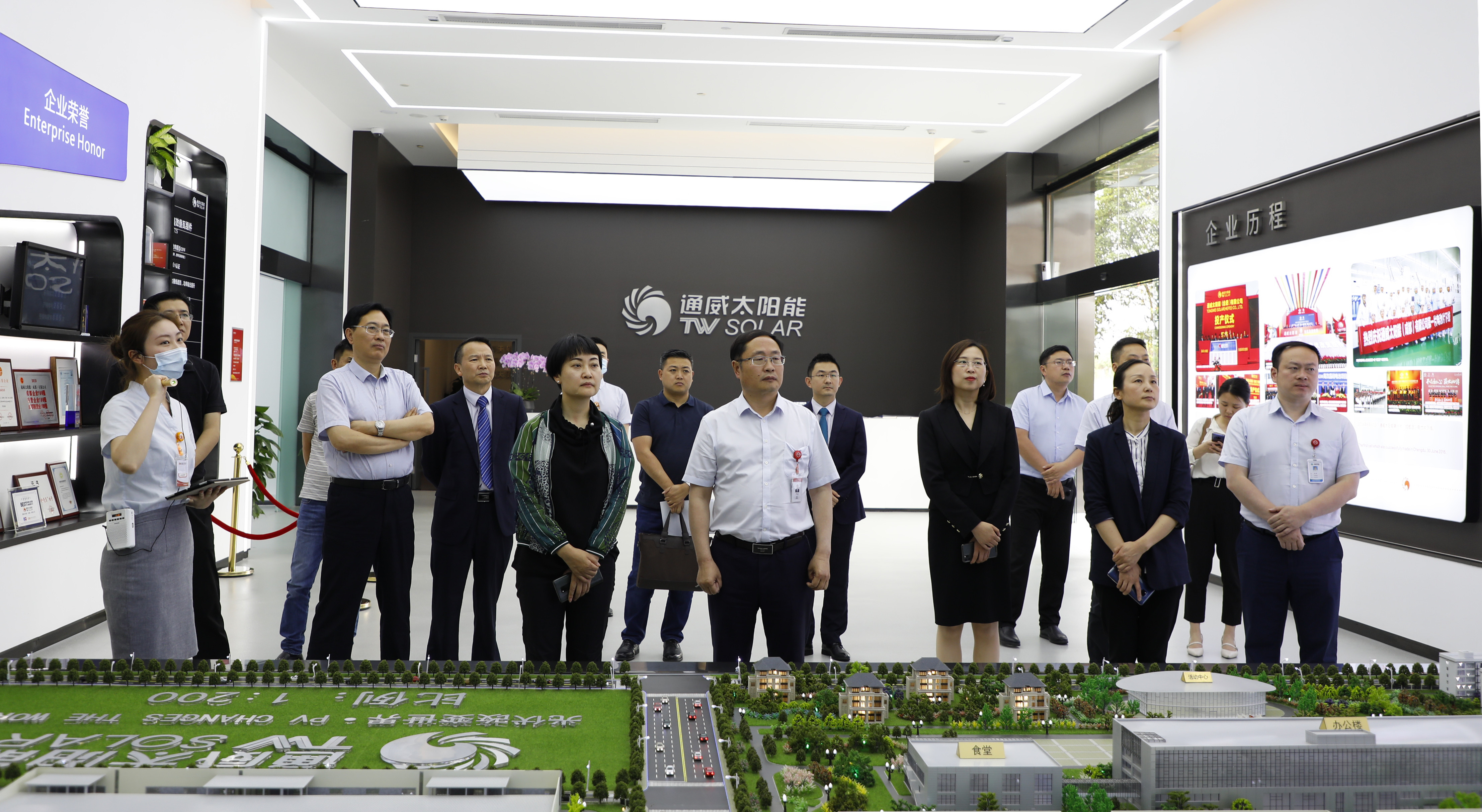 嘉賓一行先后參觀了通威太陽(yáng)能成都公司智能制造生產(chǎn)車間、通威集團(tuán)體驗(yàn)中心及“漁光一體”智能運(yùn)營(yíng)中心,詳細(xì)了解了通威38年發(fā)展歷程及兩大核心主業(yè)發(fā)展現(xiàn)狀。