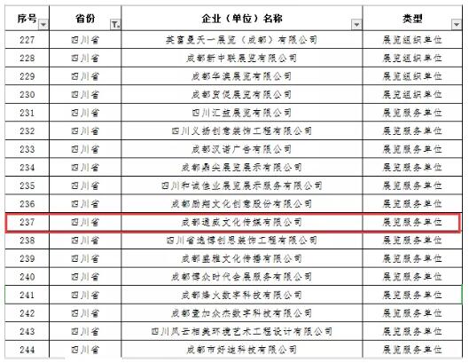 4月14日,商務部公布了展覽業重點聯系企業,確定了270家企業作為商務部展覽業重點聯系企業。四川共有26家企業入選,成都通威文化傳媒有限公司成功入選名單。