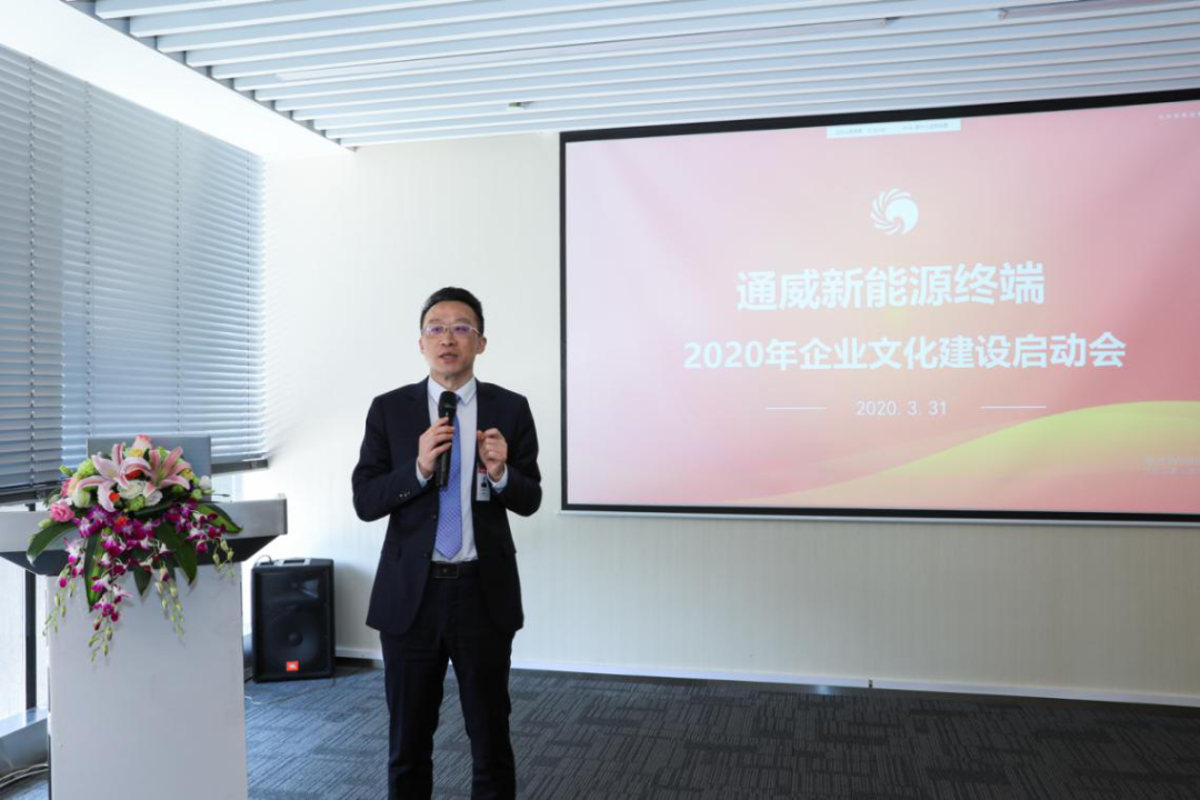 啟動儀式現(xiàn)場 啟動會上,全員學(xué)習(xí)了劉漢元主席在集團2020年度企業(yè)文化啟動儀式上的講話。通威新能源企業(yè)文化專項工作組公布了本年度企業(yè)文化活動主線,圍繞“對標(biāo)、精益、執(zhí)行”的主題,設(shè)置了強化執(zhí)行力系列管理活動、“創(chuàng)建學(xué)習(xí)團隊,打造強勢之師”學(xué)習(xí)培養(yǎng)系列活動、情暖新能源系列文化活動等5個主題活動,同時將開展“強化執(zhí)行力”主題辯論賽、“我眼中的執(zhí)行力”主題征文大賽、“聚焦執(zhí)行力”主題攝影大賽及執(zhí)行力十佳標(biāo)桿公司評選等多個主題評選比賽。 通威股份光伏事業(yè)部總裁陳星宇作總結(jié)發(fā)言 陳總就通威新能源年度企業(yè)文化工作作出指示,并表示,通威新能源成員來自五湖四海,在文化的滲透上需要引導(dǎo)、理解和交流。通威自1982年發(fā)展至今,擁有38年的發(fā)展歷程,兩大主業(yè)及適度多元化的業(yè)務(wù)形態(tài)造就了不同的業(yè)務(wù)領(lǐng)域,文化則是各板塊統(tǒng)一相連的紐帶、平臺。通威新能源作為光伏應(yīng)用端,要思考如何做好企業(yè)文化落地,并結(jié)合自身特點去落實和踐行。今年劉主席再提執(zhí)行力,重提執(zhí)行力,值得終端在坐的每一員深刻思考。執(zhí)行力是終端邁入新階段的自我審視,也是對立足新起點的再次考量,終端每個項目的成功都來之不易,要持之以恒提升執(zhí)行力,從開發(fā)、設(shè)計、建設(shè)、運營到運維,每天進步1%,對標(biāo)行業(yè)標(biāo)桿,力爭成為行業(yè)排頭兵。 陳總表示,年初受環(huán)境影響,國外光伏產(chǎn)品需求變淡導(dǎo)致國內(nèi)產(chǎn)品價格下滑,結(jié)合市場環(huán)境,通威新能源應(yīng)當(dāng)苦練內(nèi)功,在環(huán)境中尋找機遇,持續(xù)以“賽馬文化”打造終端執(zhí)行力、核心競爭力。各公司及員工要以實際行動踐行企業(yè)文化,讓文化伴隨公司成長、發(fā)展,以對文化深刻的認(rèn)知和理解,推動業(yè)務(wù)向前,解決需要解決的問題,緊抓務(wù)實工作,以文化拉動執(zhí)行,相信未來通威新能源在光伏終端的發(fā)展越來越好! 會議期間,各公司企業(yè)文化代表均進行主題發(fā)言,闡述對企業(yè)文化的理解,并紛紛表示將努力學(xué)習(xí)“對標(biāo)、精益、執(zhí)行”的企業(yè)文化精神,將文化滲透到工作執(zhí)行中,助推業(yè)務(wù)發(fā)展。