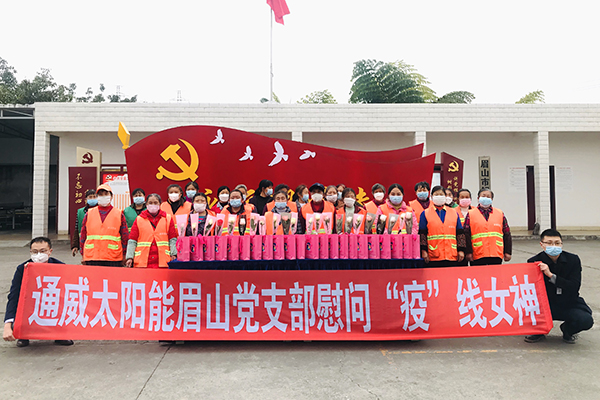 三月的初春,春暖花開,第110個“三八”國際婦女節伴著春的步履悄然來臨,作為通威太陽能黨工建設與公司發展相融合的創新結晶,“紅色聚能家”積極發揮黨建引領作用,依托工會平臺,于3月6日組織合肥、成都、眉山三地志愿者開展了關愛“疫線女神”三八國際婦女節慰問活動。