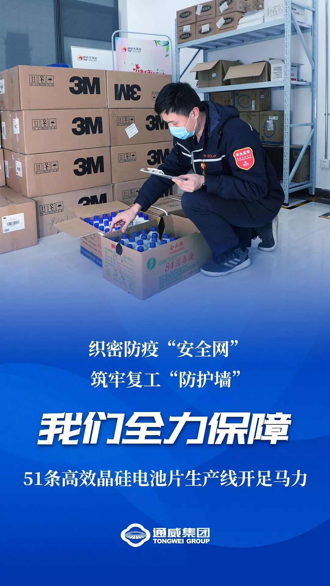 “通威太陽能作為四川第一批復工企業,51條生產線有序開足馬力的新聞受到央視等主流媒體點贊,大家都由衷感到高興,這是對我們工作的最大認可,接下來我們還將繼續筑牢病毒阻擊‘防火墻’,為公司安全穩定發展保駕護航。”李世濤說。