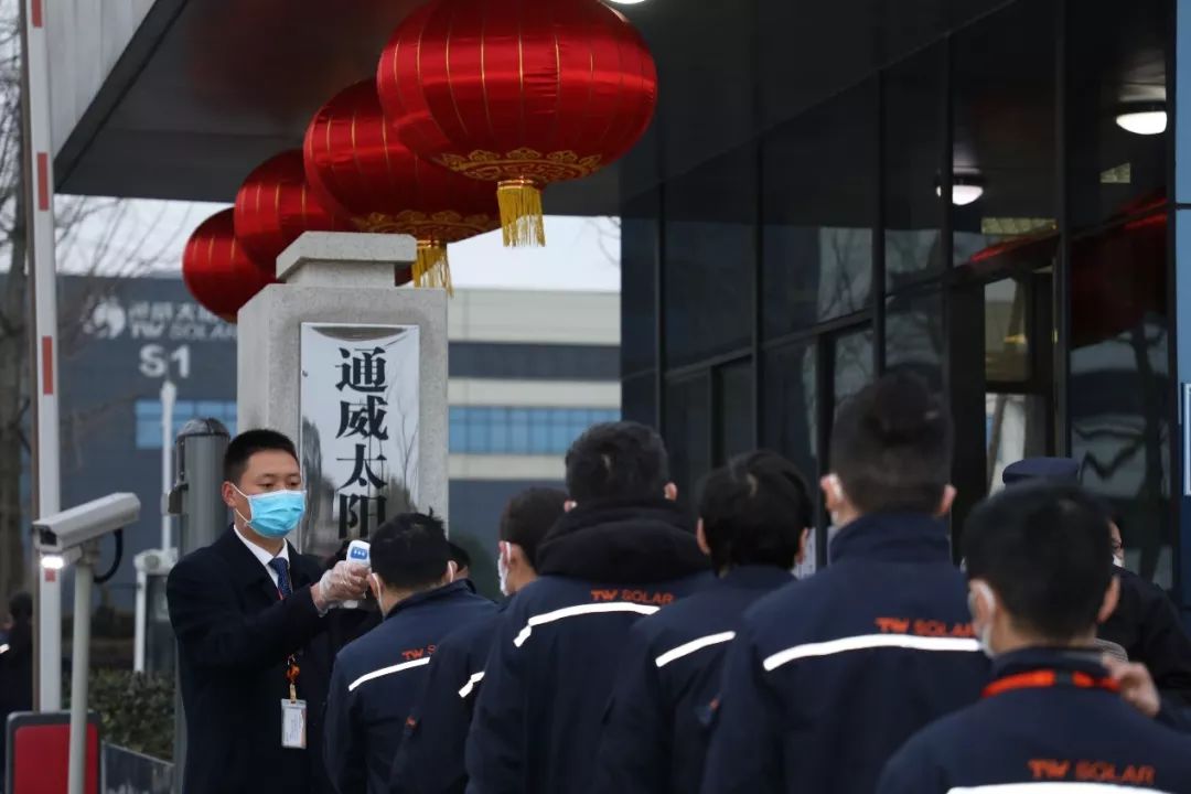 復工首日,謝毅董事長檢查通威太陽能車間防疫工作