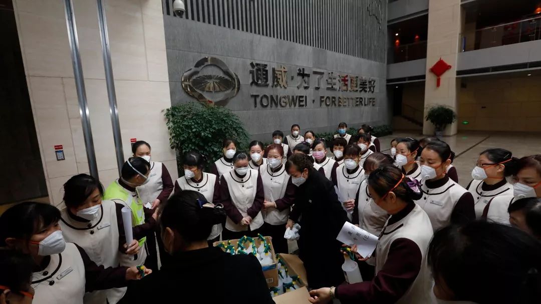 為貫徹落實(shí)主席指示,集團(tuán)行政后勤體系聞風(fēng)而動(dòng),立即執(zhí)行。當(dāng)天下午,集團(tuán)副總裁黃其剛帶領(lǐng)集團(tuán)行政后勤體系管理團(tuán)隊(duì),實(shí)地檢查了通威國際中心東廣場大門、停車場、電梯間、餐廳等關(guān)鍵場地,詳細(xì)了解體溫測量、物資儲(chǔ)備、內(nèi)外消殺、值班人員安排等具體情況和工作細(xì)節(jié)。
