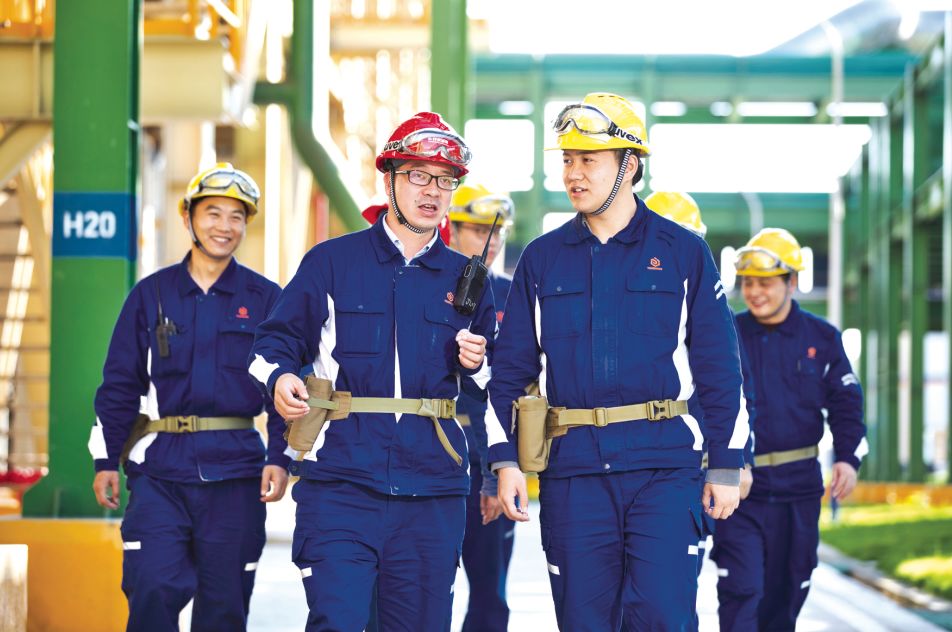 永祥新能源員工在生產一線討論工藝提升