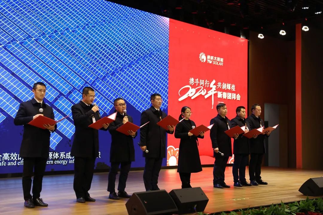 1月6日,通威太陽能2019年度表彰暨新春團(tuán)拜會(huì)在成都基地報(bào)告廳隆重舉行。通威太陽能兩地中高管、優(yōu)秀員工及優(yōu)秀部門代表、相關(guān)部門代表共計(jì)500余人現(xiàn)場及視頻參會(huì),通威股份董事長謝毅出席并全程參會(huì)。