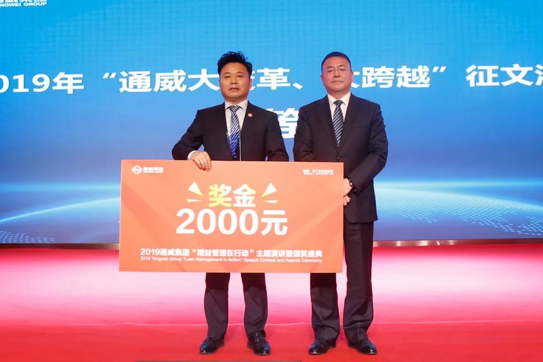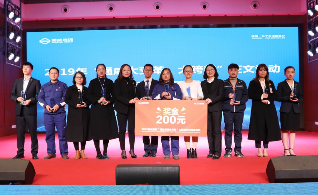 12月12日,以“厚植通威文化 引領精益管理”為主題的2019通威集團“精益管理在行動”主題演講暨頒獎盛典在通威國際中心隆重舉行。作為年度企業文化建設工作收官活動,前期集團各板塊,各分、子公司開展的“精益管理在行動”演講比賽評選活動中選拔誕生的20名優秀展演人員匯聚一堂,展示風采。盛典現場評選出優勝選手,并頒發獎金及獎杯。此外,本次盛典還進行了“通威大變革、大跨越”征文活動頒獎儀式,為前期評選出的20篇優秀征文進行現場頒獎。