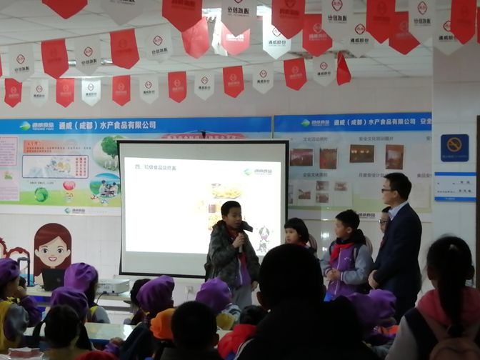 在食品安全課堂上,來自通威的食品安全專家為大家講解了生活中的食品安全常識,教授辨別垃圾食品、有害食品的方法,課堂上的有獎問答環節,更是激起了大家的熱情,將課堂氛圍推上高潮。最后,大家還親自操刀制作了魚丸蝦餃,并寫好祝福卡片,將自己親手制作的禮物送給爸爸媽媽和老師,也為這次活動畫上了圓滿的句號。