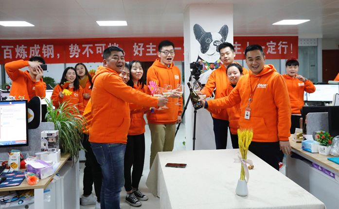 天貓旗艦店銷售額突破500萬 好主人公司總經理楊洪海為團隊取得的成績鼓掌