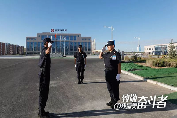 秋季的包頭,清晨7:00就太陽當空照,燦爛得讓人睜不開眼睛,耳旁是大風呼嘯的聲音。在公司升旗臺邊,通宇物業內蒙古通威高純晶硅項目主管魏志龍帶領著隊伍已準時集合,筆挺列隊。這是魏志龍一天工作的開始。每天清晨的早間會是工作慣例,總結前一天并溝通當天工作要點。“今天有場A級接待,大家提前準備”、“2號崗需要2個人”、“昨晚風大,3輛觀光車要徹底清理,肯定有不少沙”…… 早晨的陽光照射在黑色帽檐下他黝黑的臉龐,魏志龍用被風吹得干澀的嘴巴事無巨細地交代著工作要點。