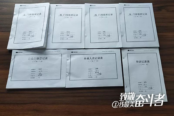 早間會結束后,8點各門崗交班,為保證公司各大門安全,秩序部每天三班倒24小時值守。魏志龍要挨個巡查各大門,檢查崗位執勤狀態、人車物的進出廠管控、煙和打火機等違禁檢查、外來人員登記。連接廠前區和廠區的2號門尤其重要,秩序人員正提醒一名女訪客:“為了安全,生產廠區不能穿裙子,請佩戴我們提供的安全帽和應急包。”魏志龍仔細檢查外來人員登記本,一個月的外來人員登記表有30頁、門崗值班記錄表45頁,密密麻麻都是字。“大門是第一道關口,必須嚴格把關,對于外來人車物,我們都會核實細節,要求登記信息完整。”魏志龍表示,廠區嚴禁明火,每個門崗配置專業設備掃描檢查。“前期施工人多,最高峰時,一天要舉著儀器檢查1000多人。”