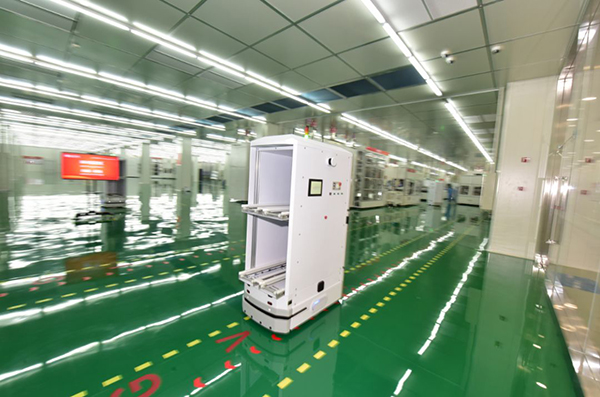 在車間里勤勞跑動(dòng)的是這個(gè)“小房子”,可別小看它。作為一個(gè)自動(dòng)化的機(jī)器人,它負(fù)責(zé)上料下料,在車間內(nèi)忙碌地來回穿梭,還會(huì)聰明地避讓行人。