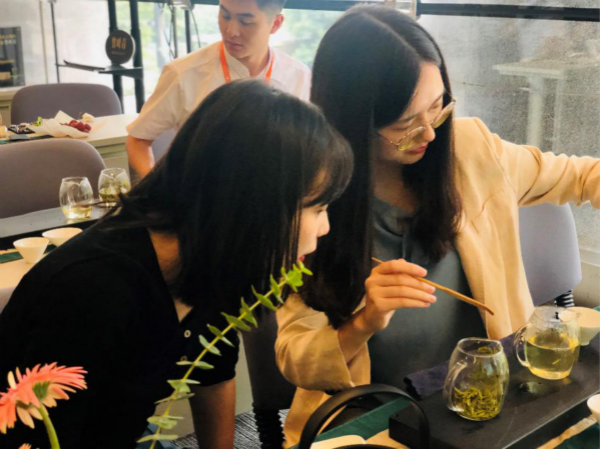 在茶藝師的悉心指導下,二十余位參與者親自體驗了溫壺、燙杯、泡茶、翻杯、聞香、品茶的全過程,從舌尖的苦澀到回味的甘甜賞味之中,進一步體會到茶葉清醇淡雅之美。在一對一的指導體驗中,茶藝師還提到,對茶葉的沖泡時間、水量多少、水質要求等的細節把握,都蘊含著深厚的文化底蘊,值得長久的細細品味與學習。