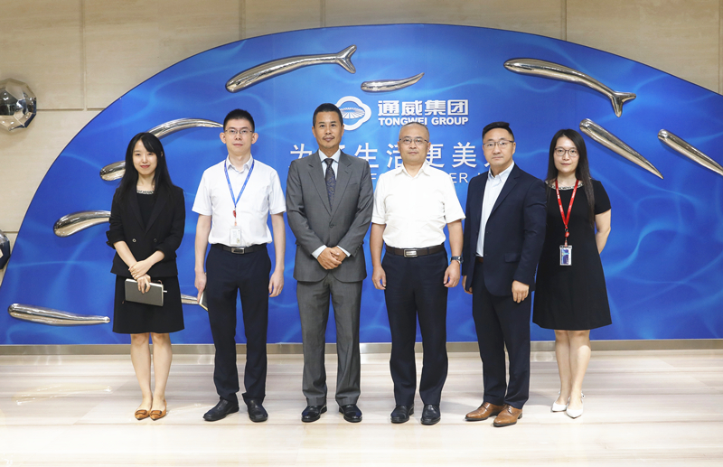 9月3日,澳大利亞貿易投資委員會投資部大中華區首席代表王恒巖一行蒞臨通威考察。通威集團副總裁胡榮柱熱情接待并座談。