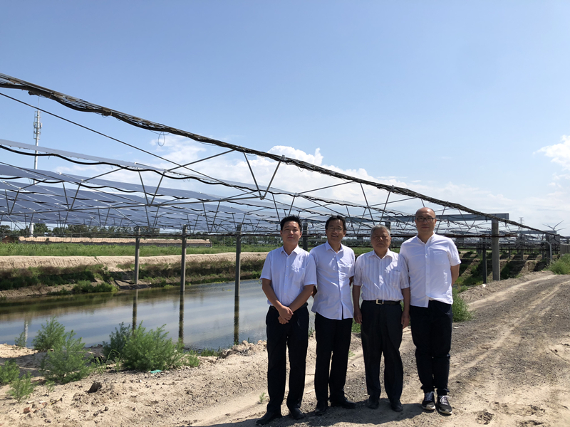 8 月16 日,中國工程院土木、水利與建筑工程學部院士陳政清蒞臨天津濱海新區(qū)楊家泊“漁光一體”柔性支架試點現(xiàn)場實地考察。通威股份光伏事業(yè)部部長張凡熱情接待。