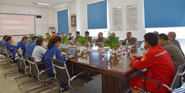 8月16日,茂縣新紀元總經理何平元率生產管理團隊蒞臨永祥股份參觀交流。永祥股份副總經理、永祥樹脂執行總經理周宗華,永祥樹脂總經理助理李業新熱情接待并座談。