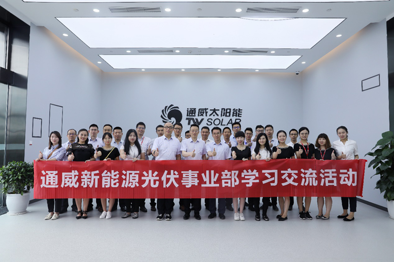 當日上午,陳總率光伏事業部中高管團隊赴通威太陽能(成都)有限公司學習交流。通威太陽能(成都)有限公司總經理謝泰宏熱情接待。