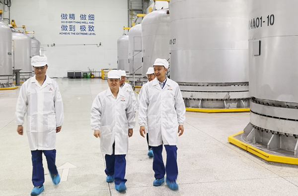 段董深入公司生產(chǎn)廠(chǎng)區(qū),先后查看了精餾、回收、還原、后處理、公輔等工段,詳細(xì)了解了各項(xiàng)裝置系統(tǒng)的運(yùn)行狀態(tài),現(xiàn)場(chǎng)查閱了班組工作臺(tái)賬,對(duì)安全生產(chǎn)、員工管理、現(xiàn)場(chǎng)環(huán)境狀況、設(shè)備維護(hù)清單等進(jìn)行指導(dǎo)。每到一處,段董都認(rèn)真聽(tīng)取員工的工作匯報(bào),并就項(xiàng)目攻關(guān)與攻關(guān)小組成員進(jìn)行了討論和交流。