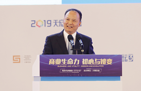 樊友山副書記表示,本次川商發(fā)展大會是在全國上下喜迎新中國成立70周年,全黨深入開展“不忘初心、牢記使命”主題教育,四川全面推進“四向拓展、全域開放”戰(zhàn)略部署進程中的一件盛事、喜事。大會也是我國民營企業(yè)在新時代發(fā)展壯大的一個縮影,是我國民營企業(yè)家特別是廣大川商精神風貌的一次展示,必將濃墨重彩地寫入四川經(jīng)濟社會發(fā)展的歷史。希望廣大川商正確看待當前形勢,保持定力、堅定信心,圍繞國家整體戰(zhàn)略,優(yōu)化布局、找準方向,努力實現(xiàn)高質量發(fā)展,在創(chuàng)新、創(chuàng)造、創(chuàng)富中拿出川商方案,打造川商傳奇、成就川商經(jīng)典。