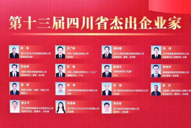 四川經濟網:謝毅董事長等15位企業家獲“四川省杰出企業家”稱號