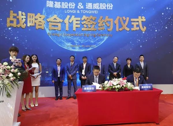 6月4日,SNEC第十三屆(2019)國際太陽能光伏與智慧能源(上海)展覽會在上海新國際博覽中心隆重開幕。繼6月3日,通威股份與隆基股份發(fā)布公告后,6月4日,兩家公司在隆基展臺正式簽署戰(zhàn)略合作伙伴協(xié)議。這是兩家公司繼去年5月簽署了多晶硅長期采購協(xié)議之后又一次深度合作。此次簽約將雙方合作關系推向新高度,兩家公司將在戰(zhàn)略投資、供應鏈合作等方面優(yōu)勢互補、深化合作。