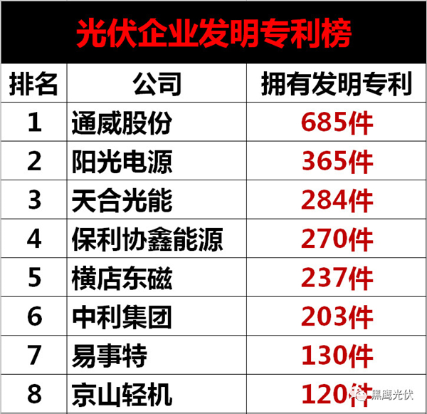 通威股份榮列“光伏發明專利40強”榜首