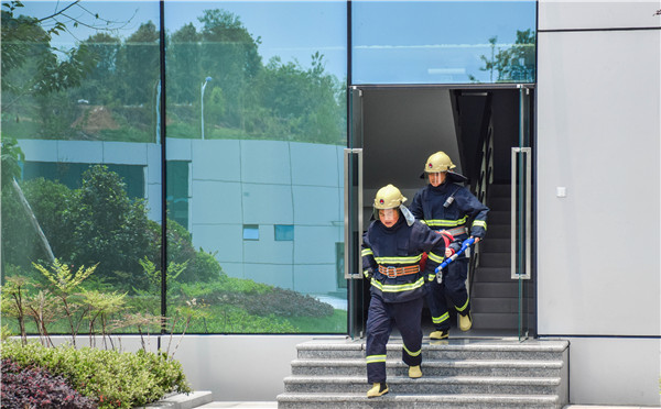 隨后,公司立即啟動(dòng)火災(zāi)預(yù)警與III級(jí)響應(yīng),消控室值班員立即啟動(dòng)檔案室氣體自動(dòng)滅火系統(tǒng)、行政樓聲光報(bào)警系統(tǒng)、消防排煙系統(tǒng)、消防廣播系統(tǒng),并安排警戒人員、秩序隊(duì)員在行政樓外警戒防守,禁止無(wú)關(guān)人員進(jìn)入行政樓。此時(shí),行政樓全體工作人員在部門(mén)安全員的指引下,從最近的逃生通道火速撤離行政樓逃至升旗廣場(chǎng)。