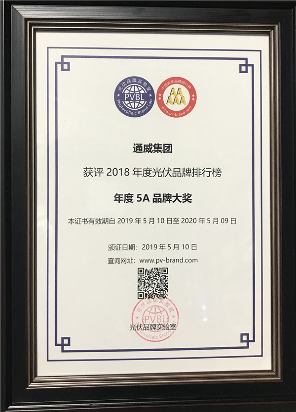 5月10日,光伏行業頂級盛會——“PVBL 2018年度中國光伏品牌排行榜”在上海重磅發布。通威集團作為中國乃至全球光伏新能源產業的核心參與者和主要推動力量,榮膺“年度最具影響力集團大獎”和“年度5A品牌大獎”兩個重磅獎項。