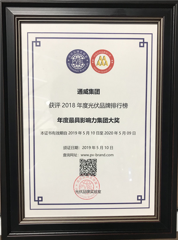 2018年度“中國光伏品牌排行榜”發布,通威集團榮膺兩項重磅獎項!