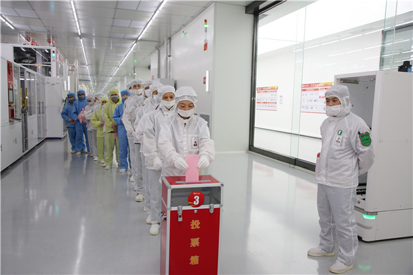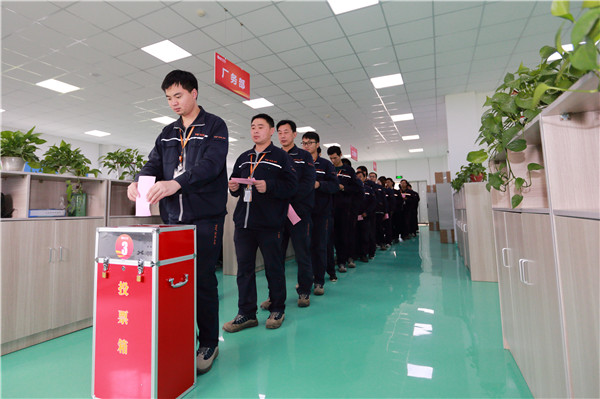 勞動節當天上午9點,兩地一線員工早早來到投票箱前排起了長龍,大家拿著評選表,寫下自己心目中的最美工匠人選并將選票投入投票箱中。