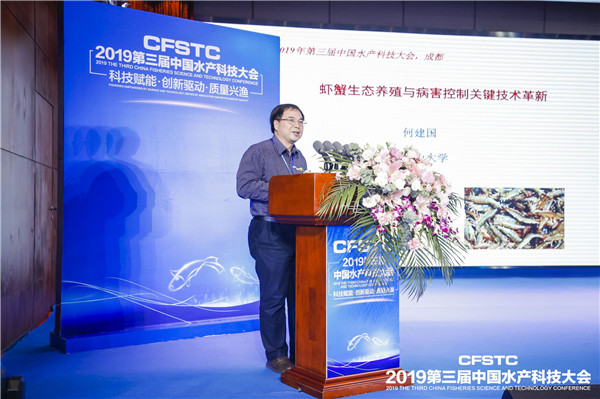 下午13:40分 中山大學教授、國家蝦蟹產業技術體系首席科學家何建國帶來“蝦、蟹生態養殖與病害控制關鍵技術革新”的主題演講。何教授表示,當前,我國蝦蟹養殖中,生態養殖的比例越來越高,多種生態養殖模式得到運用,這與生態養殖穩定、環保、病害發生少等優點息息相關。