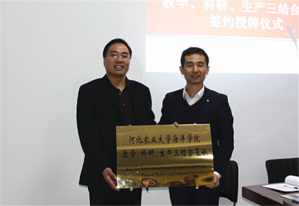 近日,河北農(nóng)大渤海校區(qū)管理委員會主任閆國君、河北農(nóng)大渤海校區(qū)黨委書記李四勝、河北農(nóng)大海洋學(xué)院黨委書記江書平、河北農(nóng)大海洋學(xué)院水產(chǎn)科學(xué)系主任齊遵利一行蒞臨青島海壬參觀交流。期間,舉行了河北農(nóng)業(yè)大學(xué)海洋學(xué)院與青島海壬教學(xué)、科研、生產(chǎn)三結(jié)合基地簽約授牌儀式。青島海壬總經(jīng)理于明超、副總經(jīng)理李志濤等陪同參觀并出席儀式。