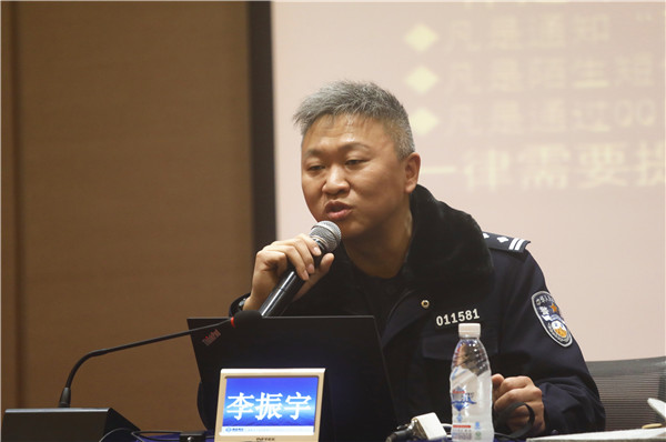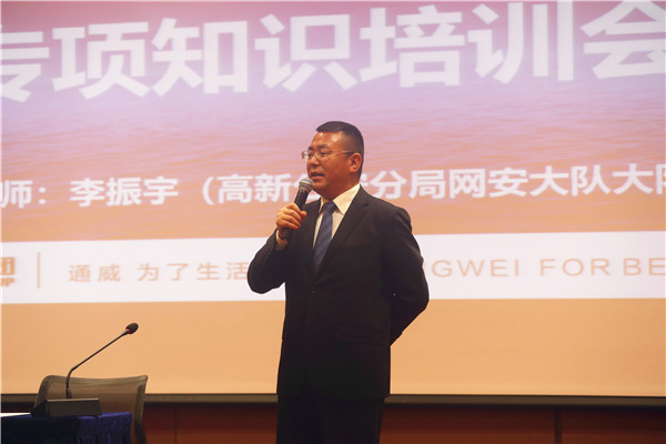 高新公安分局網安大隊長李振宇為現場員工作普法宣講