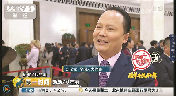 2018年3月20日,央視二套“厲害了我的國”欄目專訪劉漢元主席