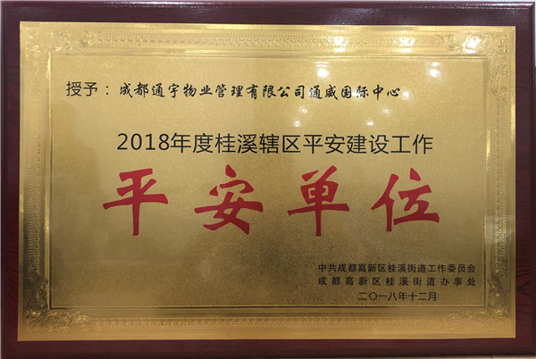 通宇物業(yè)榮獲“2018年度桂溪轄區(qū)平安建設(shè)工作平安單位”榮譽稱號