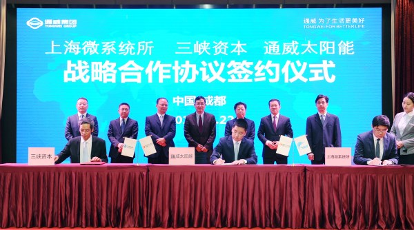 2018年5月22日,通威太陽能、上海微系統所、三峽資本正式簽訂硅基異質結SHJ太陽能電池產業化戰略合作協議,三方攜手,加快SHJ高效電池的產業化,實現強強聯合、優勢互補