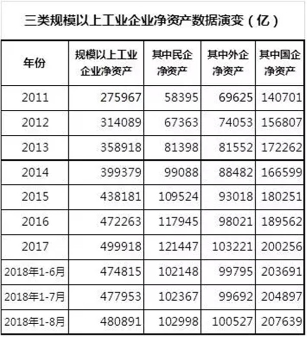 我們首先來看民企。民企的利潤轉(zhuǎn)為凈資產(chǎn)率,從2012年到2014年還呈現(xiàn)上升態(tài)勢,從49.4%提升到79.2%。這其實(shí)是非常不錯(cuò)的數(shù)據(jù)演變規(guī)律,照這么下去,民營企業(yè)家們維持著越來越旺盛的再投資熱情,必將會(huì)承擔(dān)起更大的經(jīng)濟(jì)發(fā)展責(zé)任。但此后形勢突然逆轉(zhuǎn),到2015年就下降到了44.9%,到2017年已經(jīng)下降到14.7%,再到今年1-8月份,規(guī)模以上民營工業(yè)企業(yè)掙了1.15萬億的利潤,但是其凈資產(chǎn)規(guī)模相對2017年底居然整體下降了1.84萬億(480891億-499918億)。這種凈資產(chǎn)規(guī)模下降,只能解釋為有大量的企業(yè)家選擇減產(chǎn)乃至是停產(chǎn),從“規(guī)模以上”這個(gè)總盤子里消失了。企業(yè)家們集體主動(dòng)或被動(dòng)選擇了這個(gè)危險(xiǎn)的方向,導(dǎo)致今年1-8月份的凈資產(chǎn)轉(zhuǎn)化率變成了一個(gè)負(fù)值,并且數(shù)值極大:-160.6%。